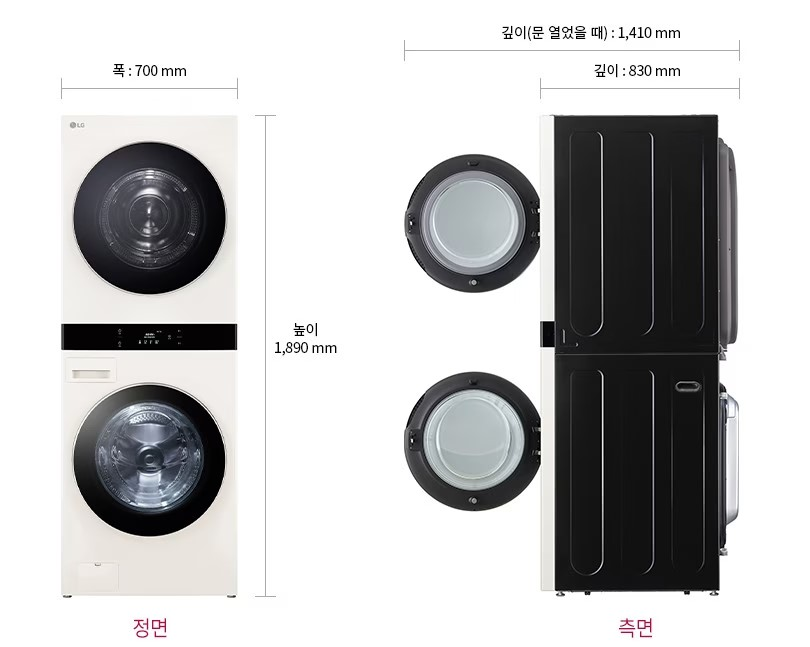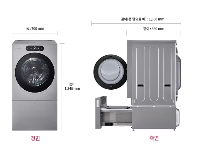| 장점 | - 세탁물을 옮길 필요가 없다 | - 건조용량이 상대적으로 크다(22kg) |