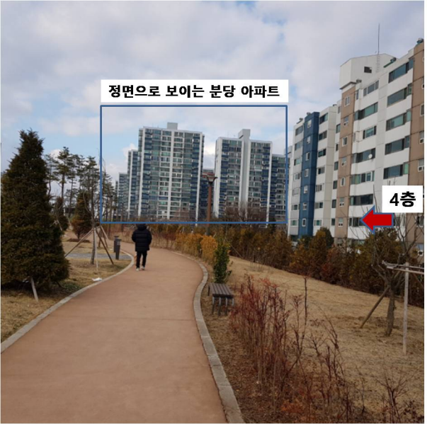 실제로 분당 아름 6단지선경아파트 604동의 경우 9층 건물인데, 바로 4층이 보이고 건물이 상당히 낮아 보인다.
