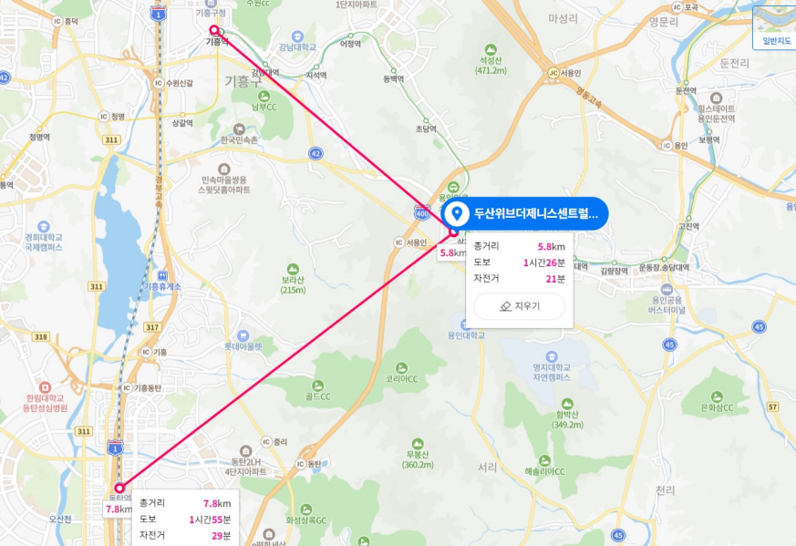 - 하지만 기사에서 내세우고 있는 GTX-F 역까지는 약 5.8km 떨어져 있고, GTX-A 동탄역까지는 약 7.8km가 떨어져 있다. 에버랜드 삼가역을 이용해서 GTX-F 기흥역을 이용할 수 있다고 하지만, 이를 가지고 GTX 예정역에서 분양하는 단지라고 할 수 없다.