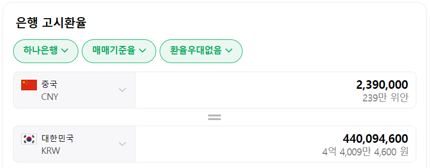 가격은 2,390,000위안입니다. 한화로 4억 4,009만 4,600원 입니다.