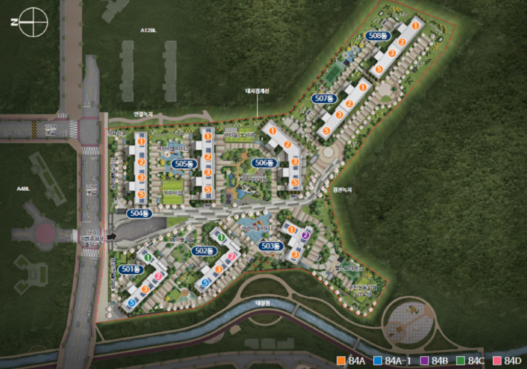 1번부터 시작해서 9번까지 한번 전체 단지를 보면서 대장지구는 어떤 곳인지 같이 살펴볼까요?
