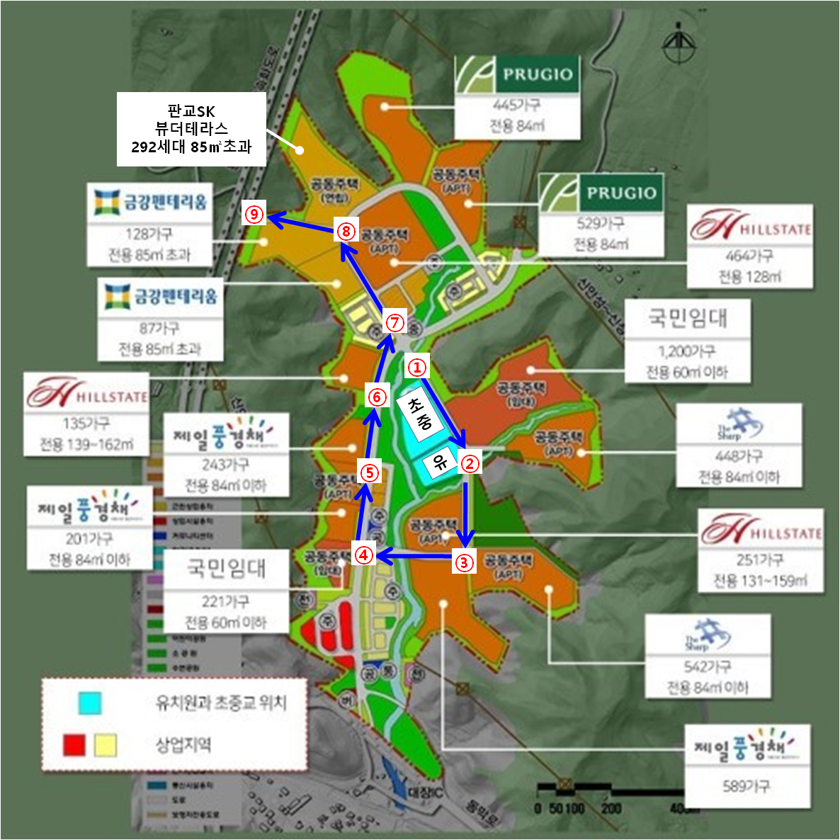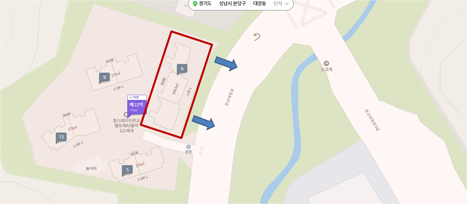 전체 대장지구 단지를 살펴보고, 개인적으로 투자적인 측면에서 구입을 한다면 4단지 힐스테이트판교엘포레, 실거주 측면에서 구입을 한다면 3단지, 힐스테이트판교엘포레를 선택했습니다.