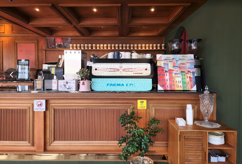 횡단보도 바로 맞은편에는 해머스미스커피 판교대장점이 위치하고 있습니다. 고급스러운 내부 인테리어와 커피 맛이 좋아, 대장동 내에서는 1등 커피 전문점이 아닐까 싶습니다.