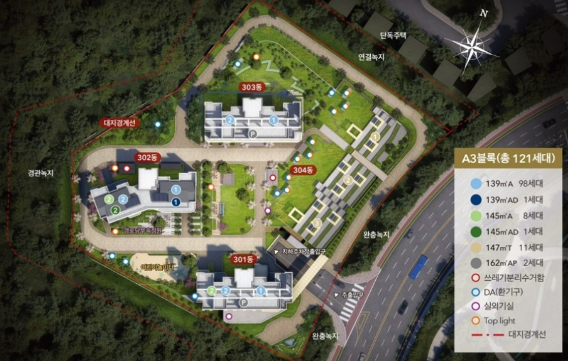 3단지, 힐스테이트판교엘포레 ᐅ 3단지, 힐스테이트판교엘포레는 2021년 6월에 입주하였으며, 121세대 총 4개동입니다.