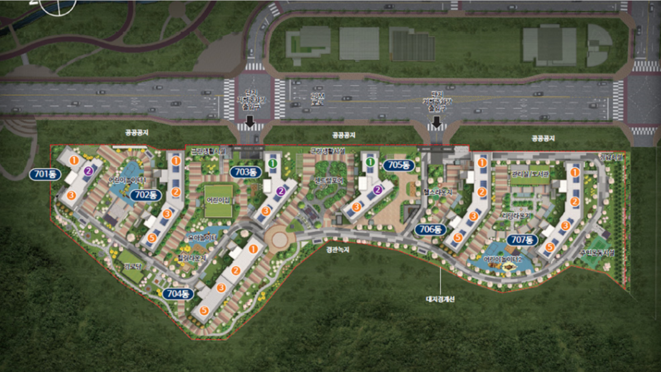 7단지 판교풍경채어바니티는 옆쪽으로 산과 길게 접해있어, 해당 동에서는 4계절이 변화하는 산을 조망할 수 있는 장점이 있습니다.
