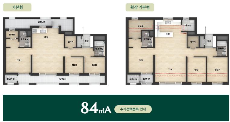 엘리프 남위례역 에듀포레는 84A, 84B 두 가지 타입이 있습니다.