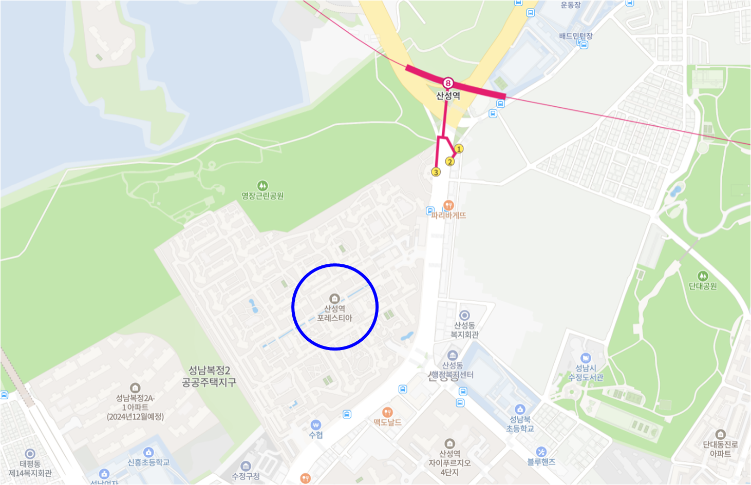 ▷ 산성역 포레스티아는 산성역 3번 출구와 바로 붙어 있는 초역세권 아파트입니다. 바로 위쪽으로 위례신도시, 송파와 인접해 있어 교통과 각종 편의시설을 이용하기 편리한 위치에 있습니다. 이 단지 분양 시 수정구 원도심에서 재건축 분양 시초가 된 아파트로 신규 아파트가 희소해 분양 전부터 관심이 많았습니다.