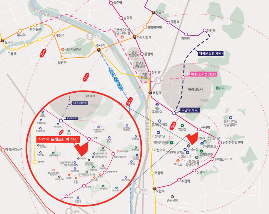 산성역 포레스티아 아파트의 시세는 주변 위례 아파트와 인접해 있어 연동될 수밖에 없는 구조입니다. 즉, 산성역 포레스티아가 값이 오르기 위해서는 위례 아파트가 먼저 올라야 하는 것이지요.