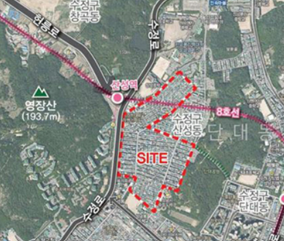 성남 산성 주택재개발정비사업은 수정로 342번 길 15-10 일원으로 면적 152,797.1㎡, 총 3,487세대(분양: 3,066, 임대: 421)를 건축할 예정입니다.