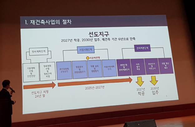 선도지구를 24년 말에 지정하고, 분양신청 및 관리처분인가까지 2027년 이전에 완료하여 2027년에 착공 예정이다. 이후 준공 및 이전고시를 2030년까지 완료하여 2030년에 입주한다는 계획이다.