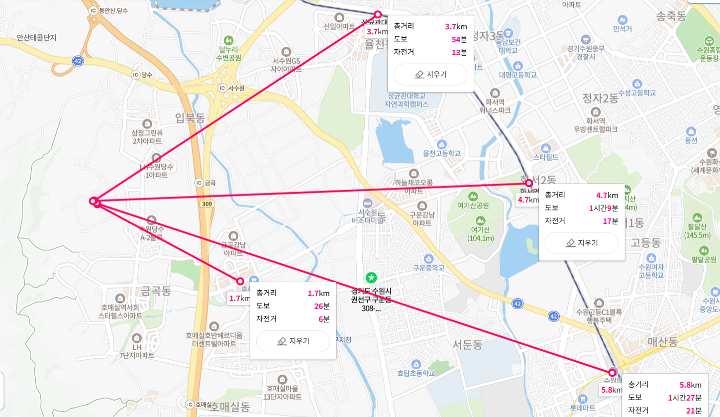 - 앞으로 생길 신분당선 연장 호매실역까지는약 1.7km 거리로 도보로는 이용이 힘들고 버스를 이용해야 합니다. 1호선 수원역까지는 약 5.8km이고 화서역까지는 약 4.7km입니다. 최근 화서역에는 수원 스타필드가 오픈하여 다양한 쇼핑을 즐길 수 있습니다.