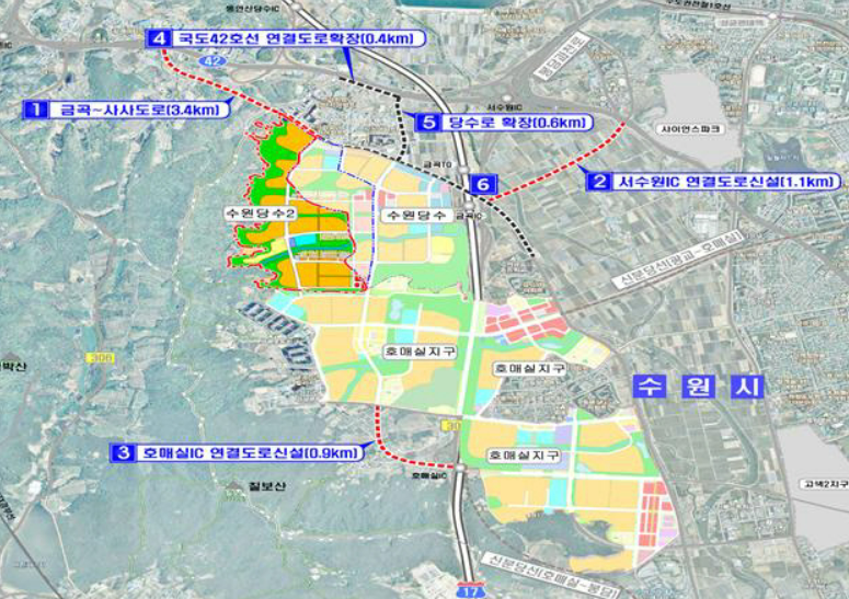 수원당수2는 바로 옆에 수원당수지구 아래로는 호매실지구와 맞닿아 있어 하나의 생활권으로 통합발전이 예상됩니다. 초기에는 생활편의 시설이 부족한데 수원당수지구 및 호매실지구에 상업시설을 이용하면 되는 장점이 있습니다.