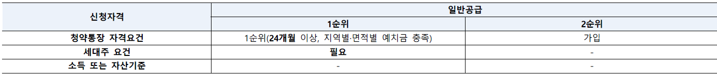 ▷청약통장 자격 요건 : 1순위 (24개월 이상, 지역별/면적별 예치금 충족), 해당 세대의 경우 전용 85㎡이하에 해당