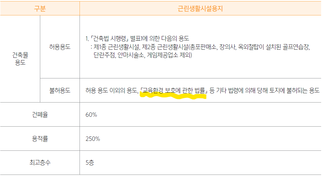 - 하지만 본 필지의 문제는 바로 앞에 초등학교가 위치하고 있다는 점 입니다. 근린생활시설은 1층에 상가를 넣고 나머지 층에는 주거를 넣는 형태로 1층 상가의 수익성이 아주 중요합니다. 그런데 초등학교로 인해 유해시설로 판단되는 업종이 들어올 수 없으므로, 수익성이 나올 수가 없습니다. 따라서 현재의 가격으로는 분양이 어렵워 보입니다.