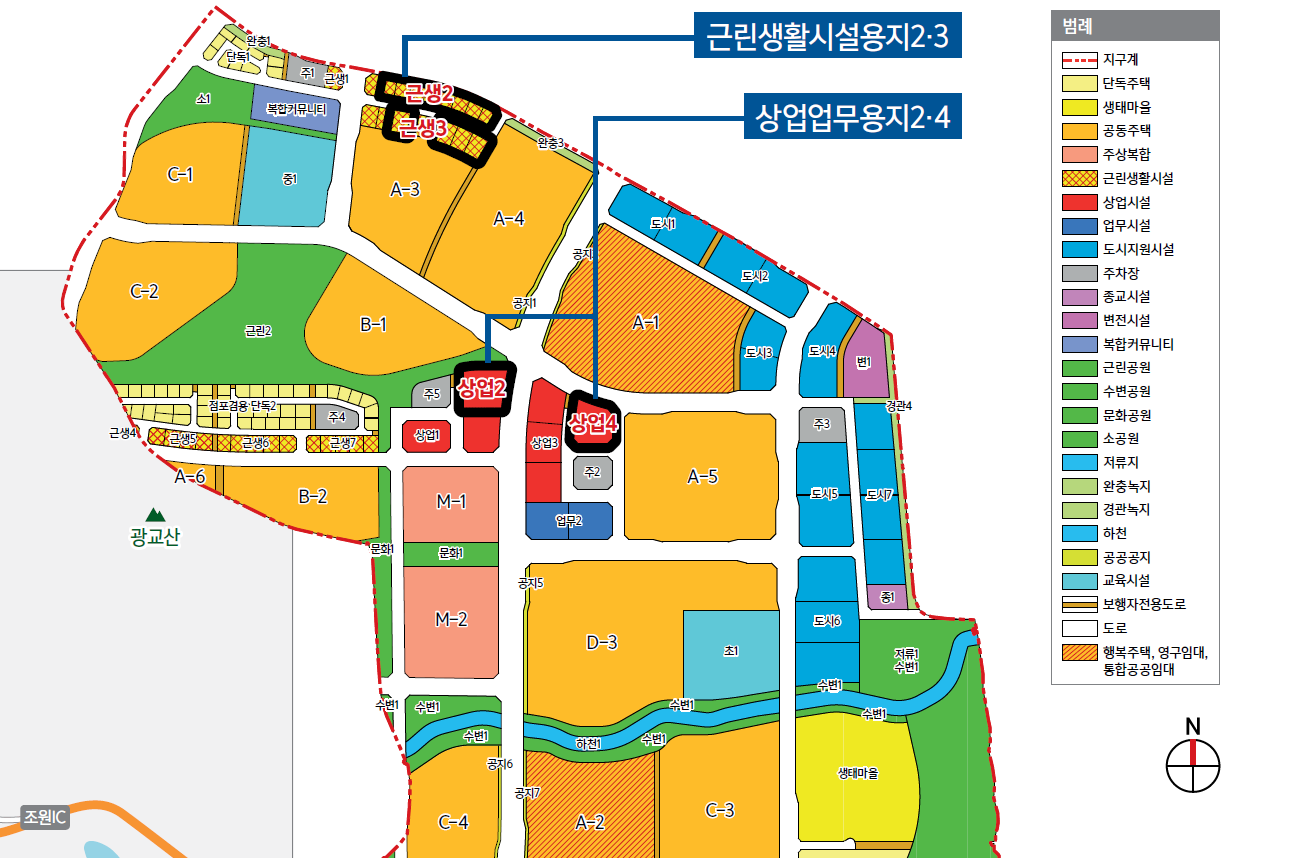 ▷대금납부조건은 상업용지 와 근린생활시설용지 모두 1년 거치 3년 유이자 분할납부 이며, 공급방법은 경쟁입찰입니다.