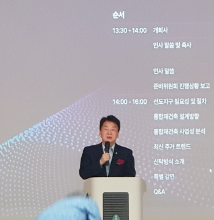 ▷인사 말씀은 준비위 위원장이신 이천수님이 진행을 해주셨습니다. 이매 성지·청구 통합 재건축을 위해서 잘 준비를 해왔고, 앞으로도 잘 진행될 것이다. 그리고 선도지구 지정이 될 수 있도록 동의률을 올려달라는 내용 위주로 말씀하셨습니다.
