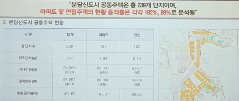 분당신도시의 인구수는 약 39만 6천, 세대수는 15만 5천세대규모로 건설되었다고 합니다. 이 중에 아파트에서 거주하는 인구가 347,592인으로 압도적인 비중을 차지하고 있습니다. 해당 아파트가 노후화됨에 따라 재건축을 통한 신축 수요가 높은 상황입니다.