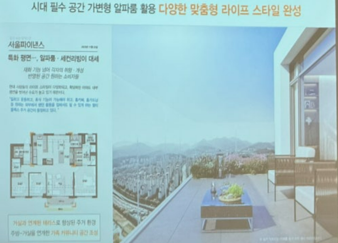 - 4베이 판상형 구조, 초대형 드레스룸과 미니서재, 테라스와 거실 확장 등 선택 가능