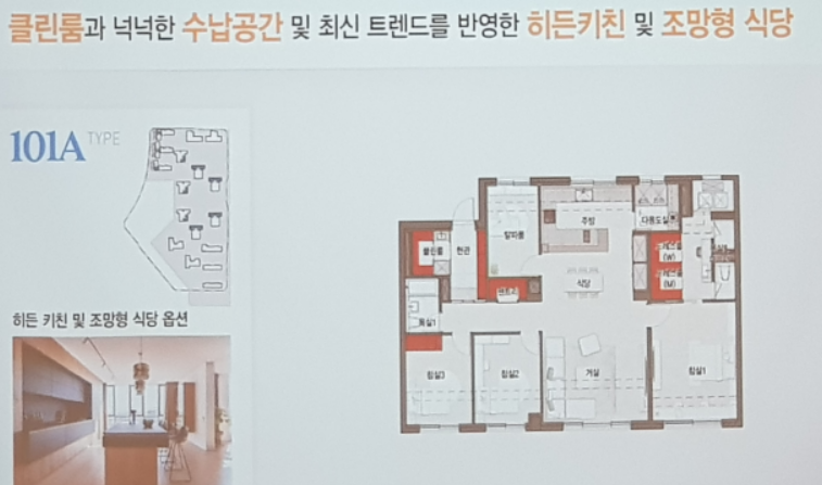 - 클린룸과 넉넉한 수납공간, 최신 트렌드를 반영한 히든키친 및 조망형 식당