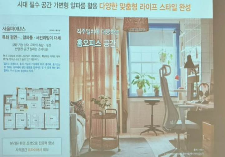 ▷내부의 경우 가벽을 적용하여 가변형 알파룸을 활용하여 다양한 맞춤형 라이프 스타일을 완성하도록 했습니다. 가변형 알파룸은 다음과 같이 활용 가능합니다.