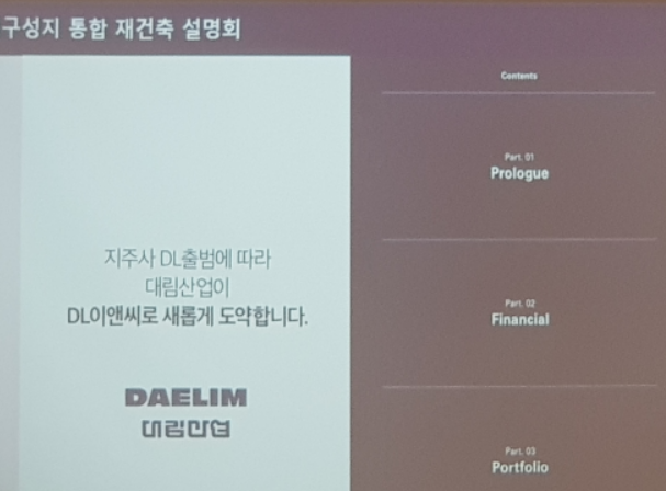 ▷지주사 DL 출범에 따라서 대림산업이 DL이앤씨로 새롭게 도약했다고 합니다. 이번 설명회에서는 이점을 가장 강조했습니다.