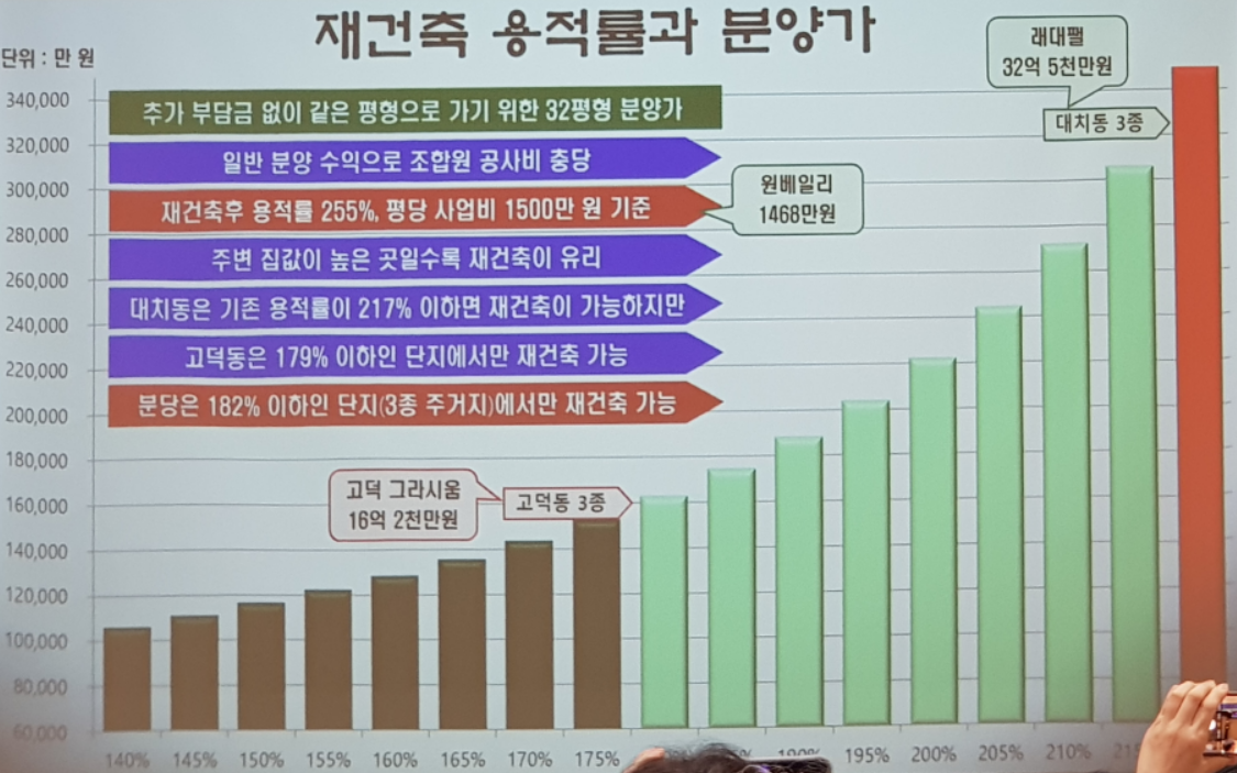 - 기존 집값이 25억인데 추가부담금이 5억원이라면 동의율이 높게 나온다 --> 집값의 20%만 내면 새 아파트가 가능하므로 동의율이 높게 나온다.