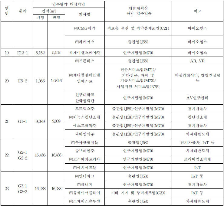 가. 주요 유치업종(변경없음) : 첨단제조업(첨단업종), 지식산업, 문화산업, 정보통신산업, 미래성장 동력산업
