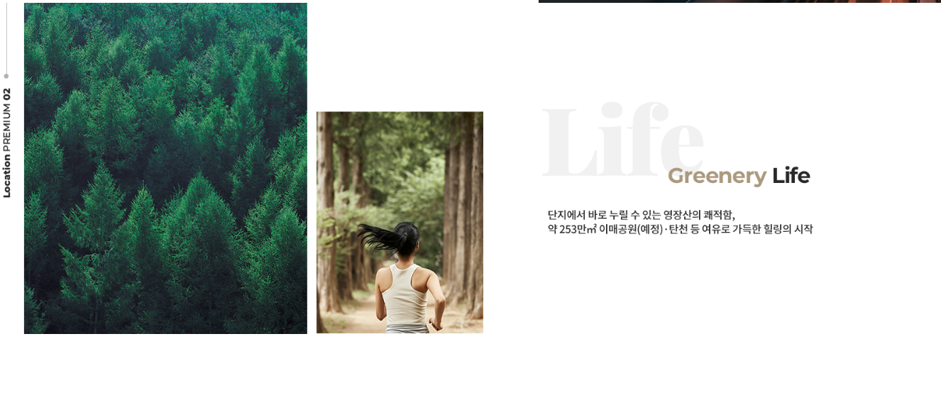 ▷분당이매 더 스카이 52는 "Greenery Life"를 내세우고 있습니다. 단지에서 바로 누릴 수 있는 영장산, 이매공원, 탄천 등으로 힐링을 누릴 수 있다는 점입니다.