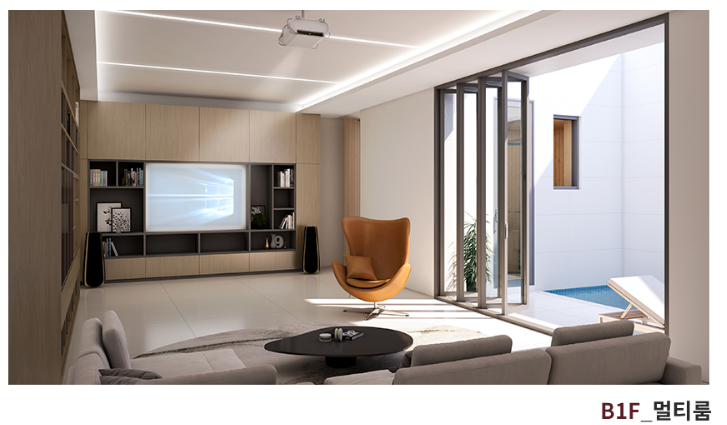 각종 멀티미디어를 누릴수 있는 멀티룸 또한 큰 장점입니다. 일반 아파트의 경우 소음 문제로 스피커 음량도 마음대로 올릴 수 없는데, 분당이매 더 스카이 52에서는 지하에서 자신이 원하는 대로 마음껏 즐길 수 있습니다.
