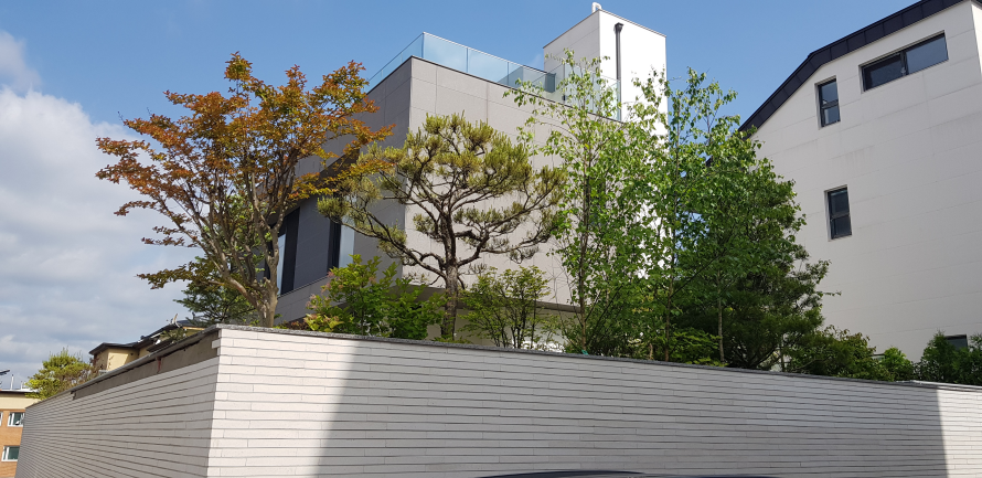 ▷1층에는 주방과 거실 그리고 엘리베이터가 연결됩니다. 특히 양 옆 테라스에서 각 세대만의 정원이 있습니다. 특히 한 세대의 경우 아래와 같이 단풍나무와 자작나무를 심어 놓았는데, 정말 관리가 잘된 것 같습니다. 역시 타운하우스에 살고 싶었습니다.