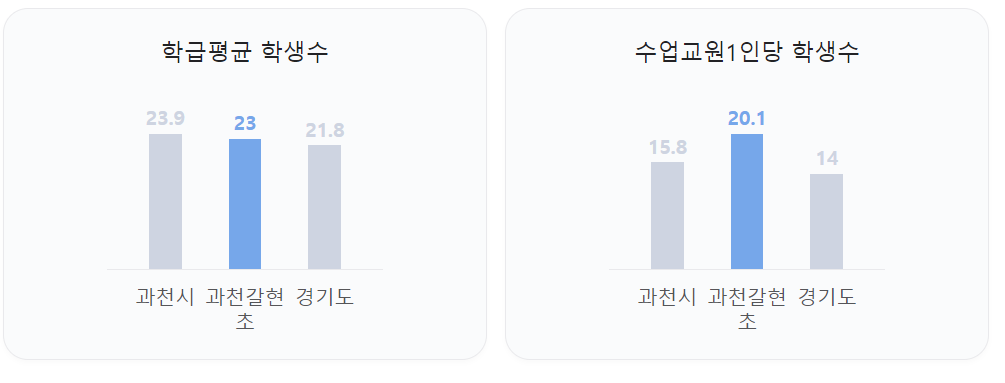 - 과천 그랑레브 데시앙은 바로 앞에 과천갈현초등학교와 병설유치원이 위치하고 있어, 안전하게 통학이 가능합니다. 현재 1학년 2학년의 학급이 각각 9학급, 10학급으로 요즘의 초등학교를 생각하면 상당히 많은 학급을 가지고 있습니다.