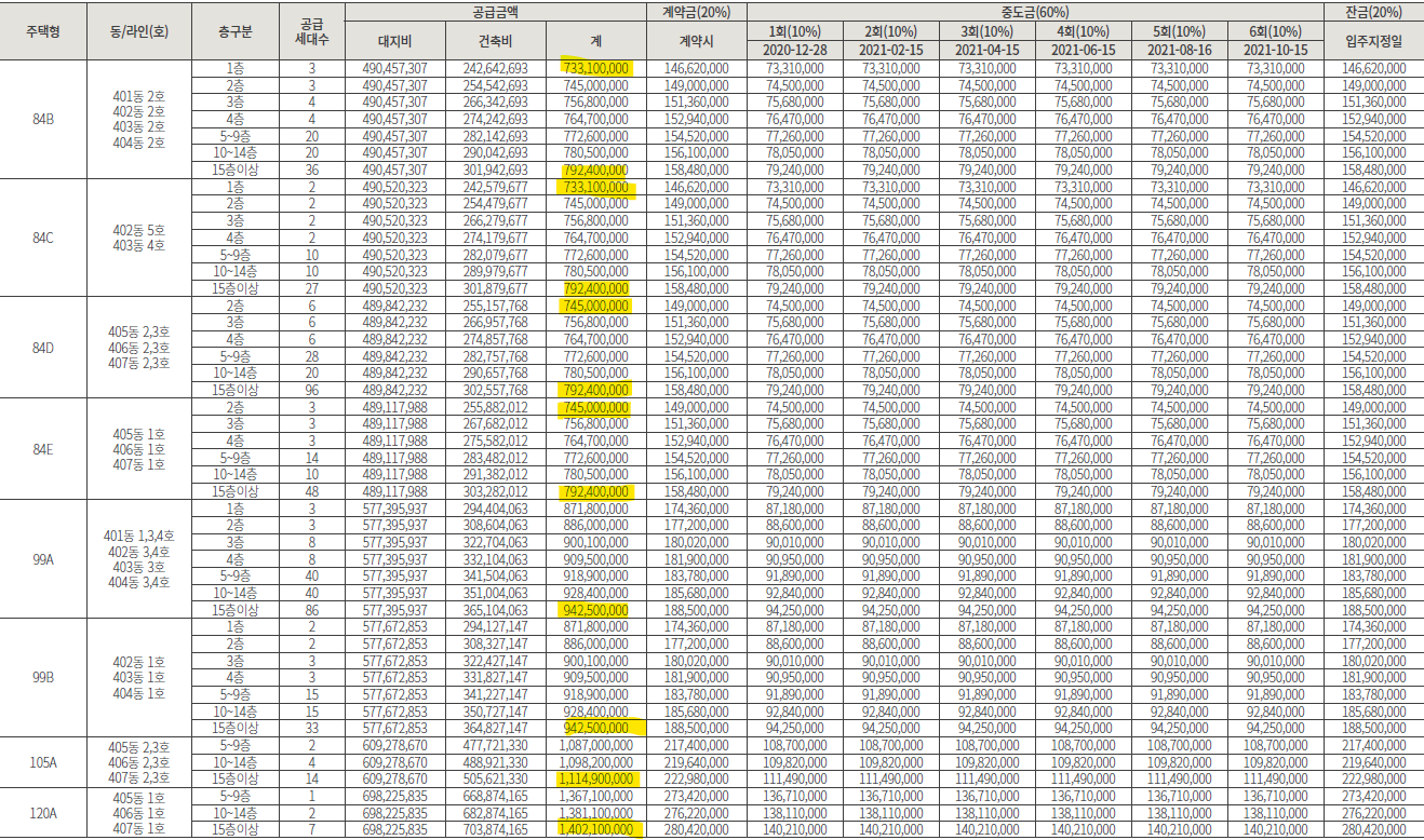 ■ 공급금액 : 이번에 분양한 과천 디에트르 퍼스티지(S4BL)의 경우 24평형의 분양 가격이 8억 7000만 원입니다. 이와 비교해 보면, 라비엔오의 경우 33평형이 8억을 넘지 않습니다. 향후 지식정보타운역의 역세권이라는 점과 대형 평수 위주의 단지라는 점을 고려하면 거의 반값에 분양된 단지라고 보면 됩니다.