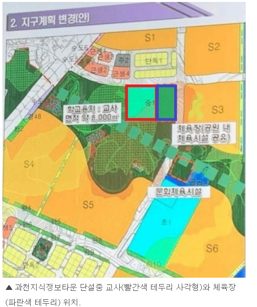 ■ 지식정보타운 내에서 현재는 중학교 부족 문제가 심각한 수준입니다. 원래 계획에는 S3블록 왼편으로 중학교 용지가 있어 건립 예정이었으나 단설중학교 설립 시 녹지율 확보 문제 등으로 인해 지연되고 있습니다.
