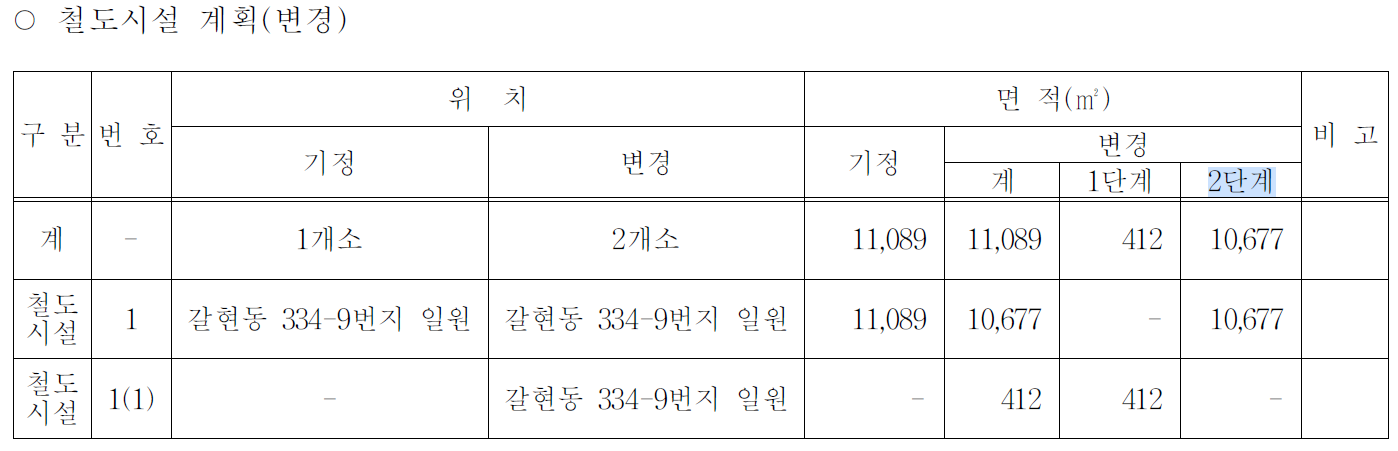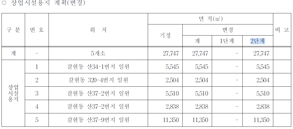 전체 면적에서 2단계로 연기된 면적은 832,812.4㎡로 1단계에 비해 약 1.5배가 많습니다. 그만큼 전체 일정에서 상당 부분이 연기된 것으로 보이는데, 구체적으로 연기된 부분을 보면 다음과 같습니다.