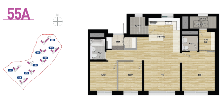 ※ 평면도의 평면구성, 옵션적용, 실별확장 여부는 입주예정자 선호도조사 등 설계진행 및 인허가 과정에서 변경될 수 있음