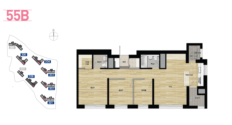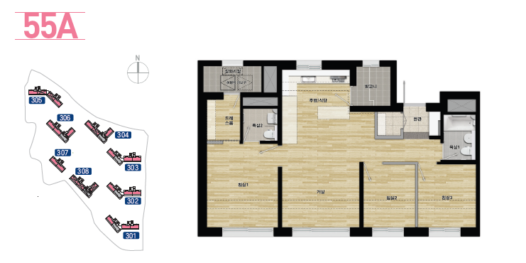 ※ 평면도의 평면구성, 옵션적용, 실별확장 여부는 입주예정자 선호도조사 등 설계진행 및 인허가 과정에서 변경될 수 있음
