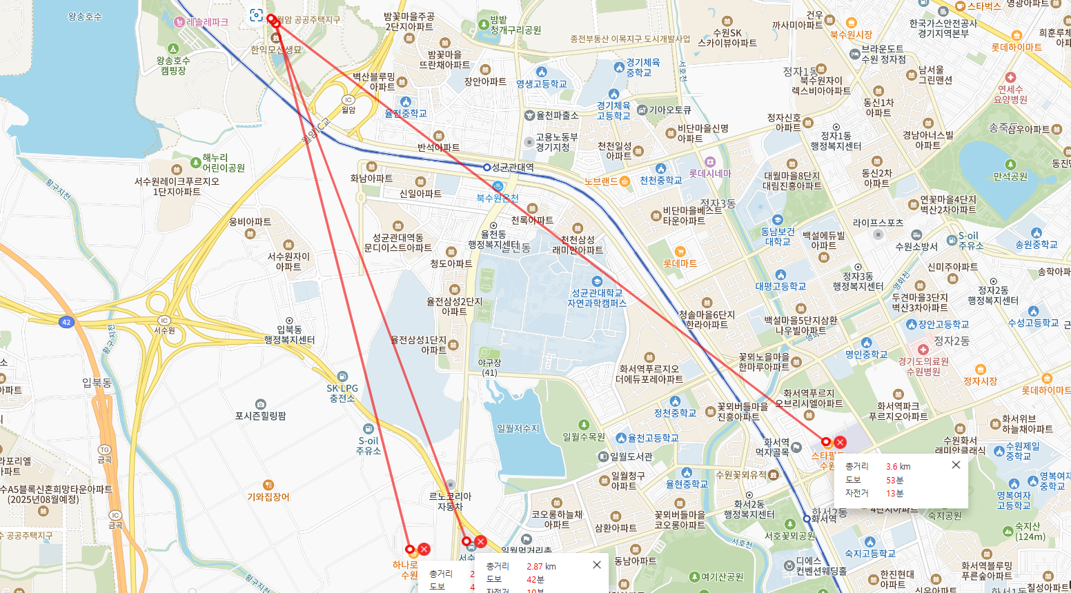 ■ 의왕월암지구는 의왕에 속하긴 하지만 북수원과 바로 인접하고 있습니다. 그래서 북수원/서수원에 위치해 있는 편의시설이 의왕에 있는 편의시설보다 가깝습니다.