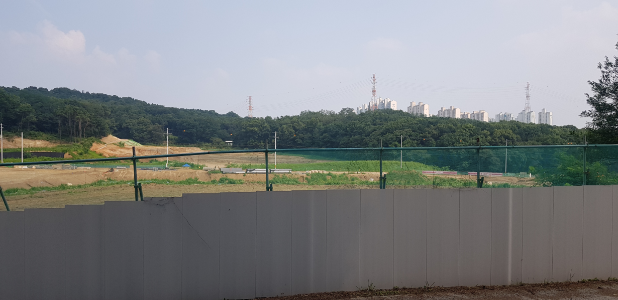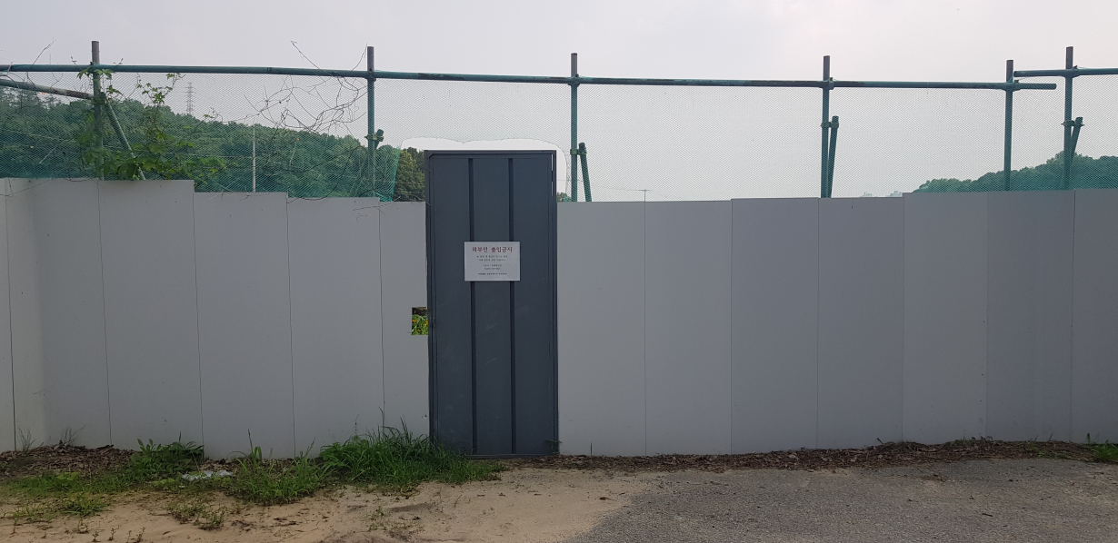 현재 월암지구는 전체적으로 출입이 불가능한 상태입니다. 지구 전체적으로 높은 펜스가 쳐져있고, 출입문에는 출입금지 표시가 있습니다. 내부 진행 상태를 보기위해 근처에 있는 약간 높은 지대를 찾아서 내부의 진행 현황을 사진으로 담았습니다.
