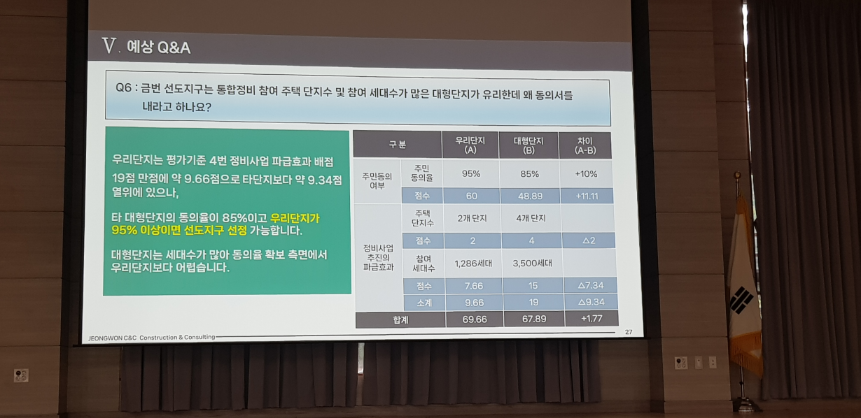 - 타 대형단지의 동의율이 85%이고 우리단지가 95% 이상이면 선도지구 선정이 가능합니다.