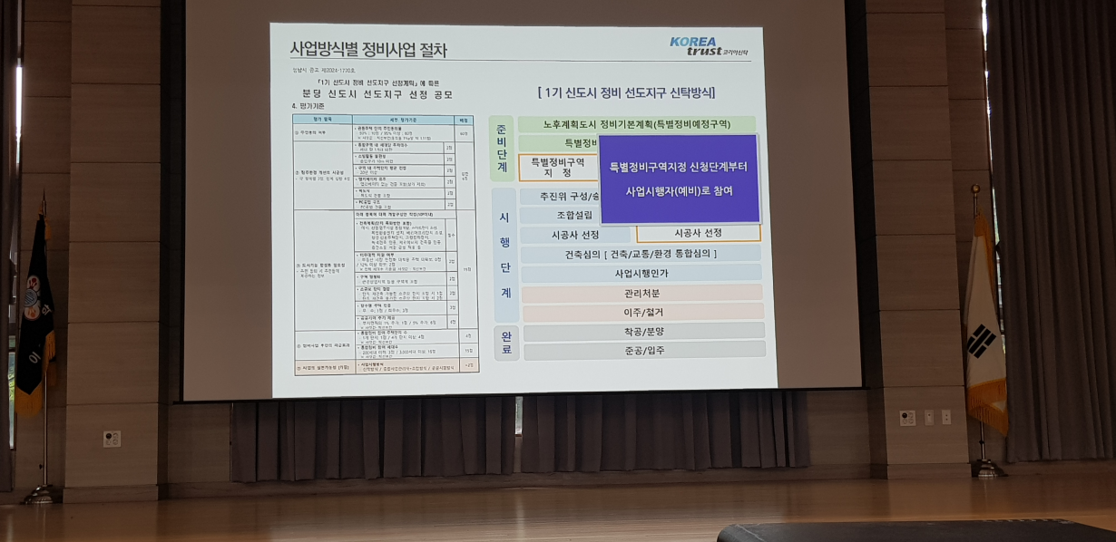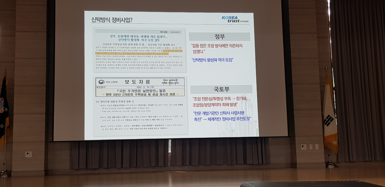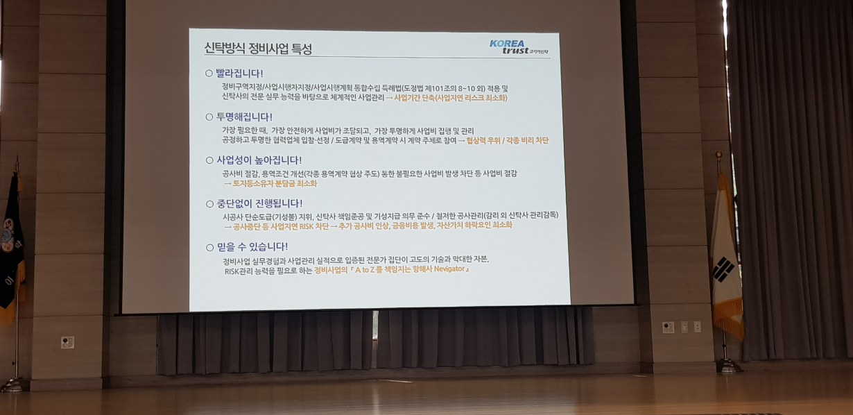 ▶신탁 방식으로 정비사업을 진행하는 것에 대해 코리아신탁에서 설명을 진행해 주셨습니다.