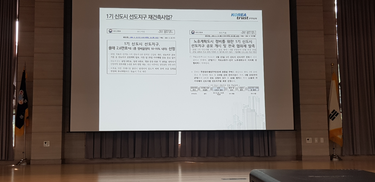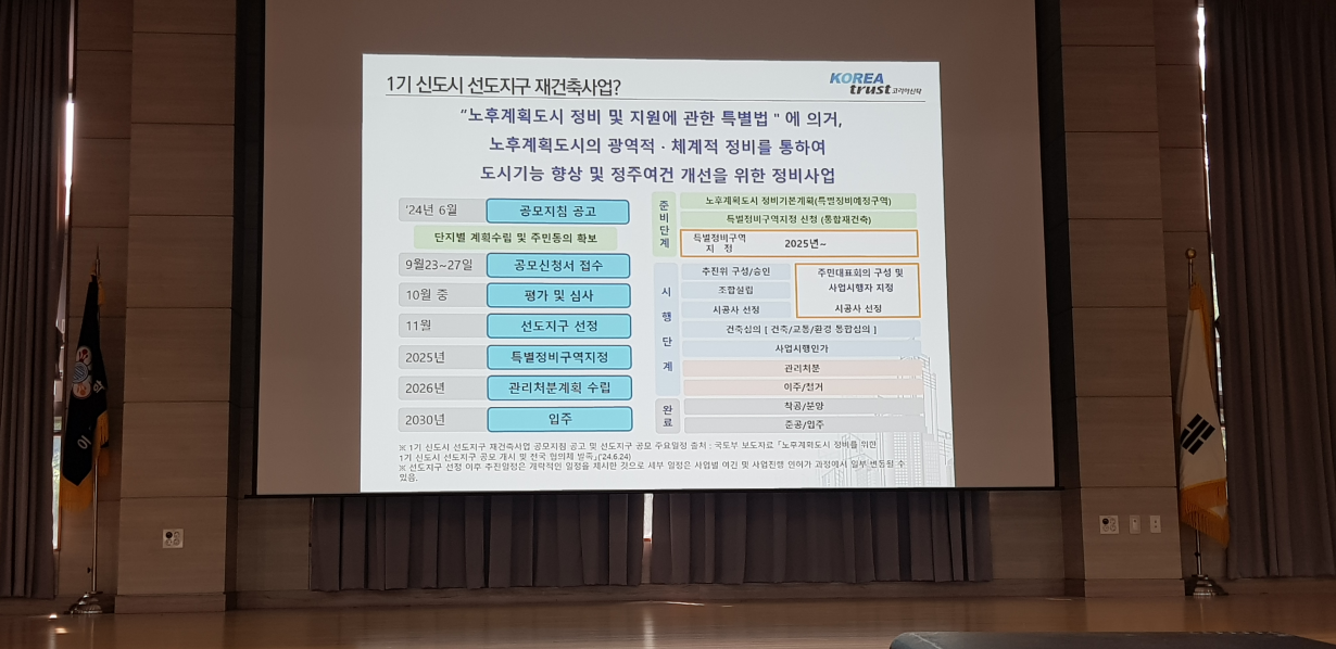 우선, 1기 신도시 선도지구 선정에 대한 대략적인 내용을 우선 설명했습니다. 기존에 많이 나왔던 내용으로 간단하게 중요 요점만 집어 주셨습니다.