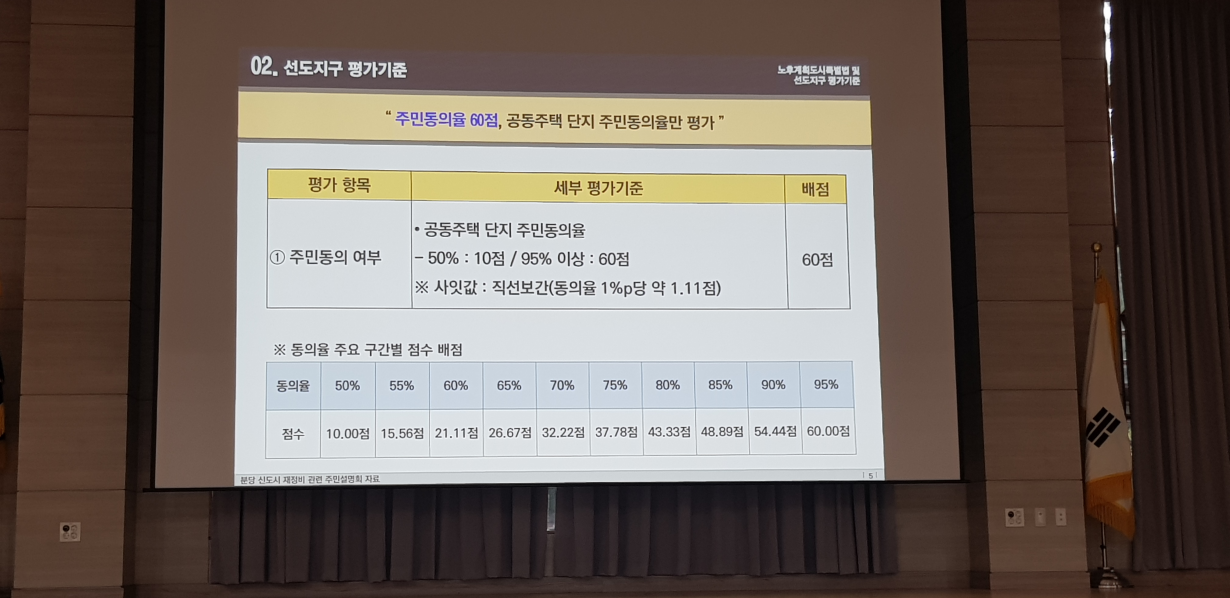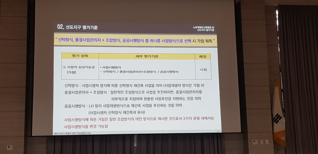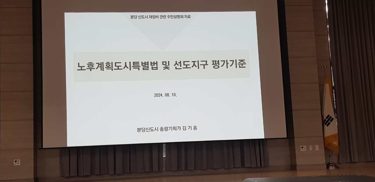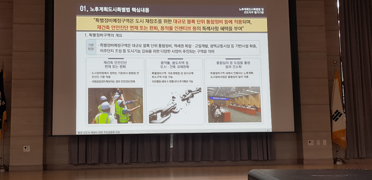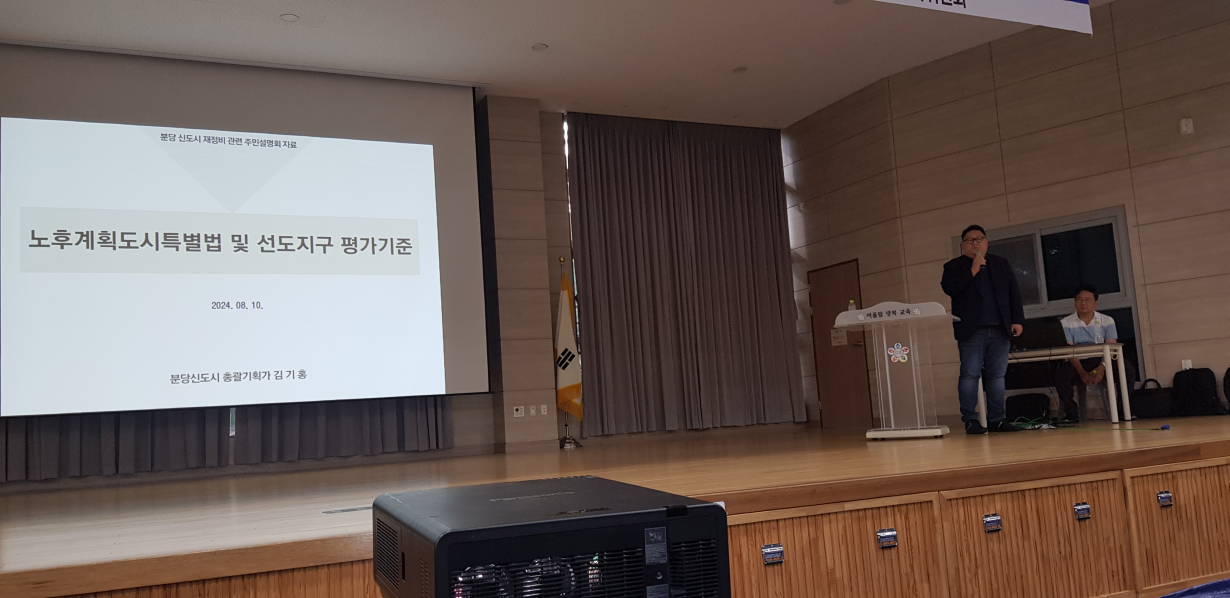 ▶노후계획도시특별법 및 선도지구 평가기준 관련하여 국토부에 김기홍 MP님이 설명을 진행해 주셨습니다. 김기호MP님은 분당지구 전체를 관리하고 있어, 그동안 분당에서 진행되었던 재건추 관련 설명회에는 거의 모두 참석하셔서 진행해 주셨습니다.