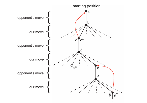- d에서는 e*로 가는 것이 가장 최적이나, e로 이동하는 탐색을 진행한 것